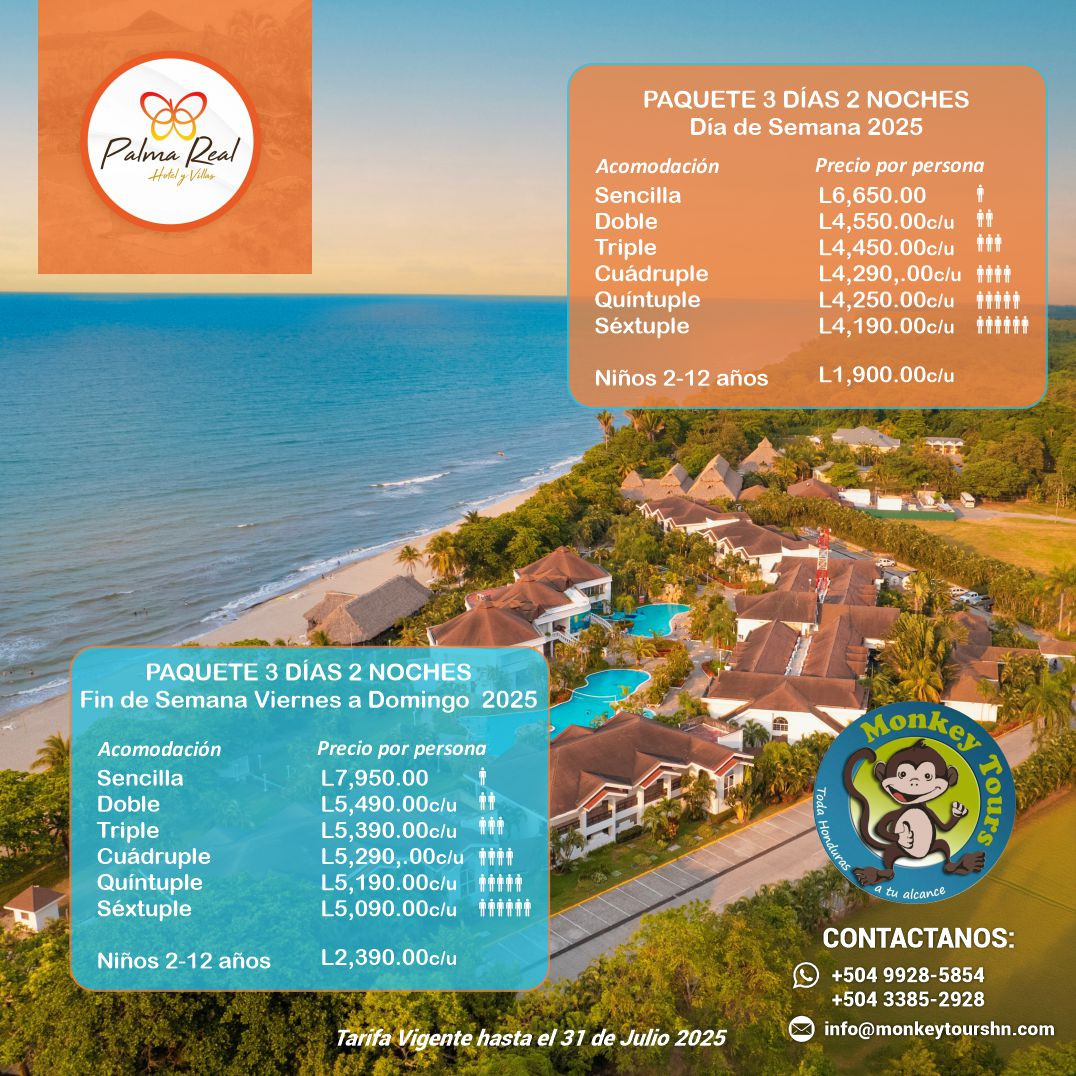 - 3 días 2 noche Hospedaje en Palma Real La Ceiba, todas las habitaciones cuentan con 2 Camas Matrimoniales.