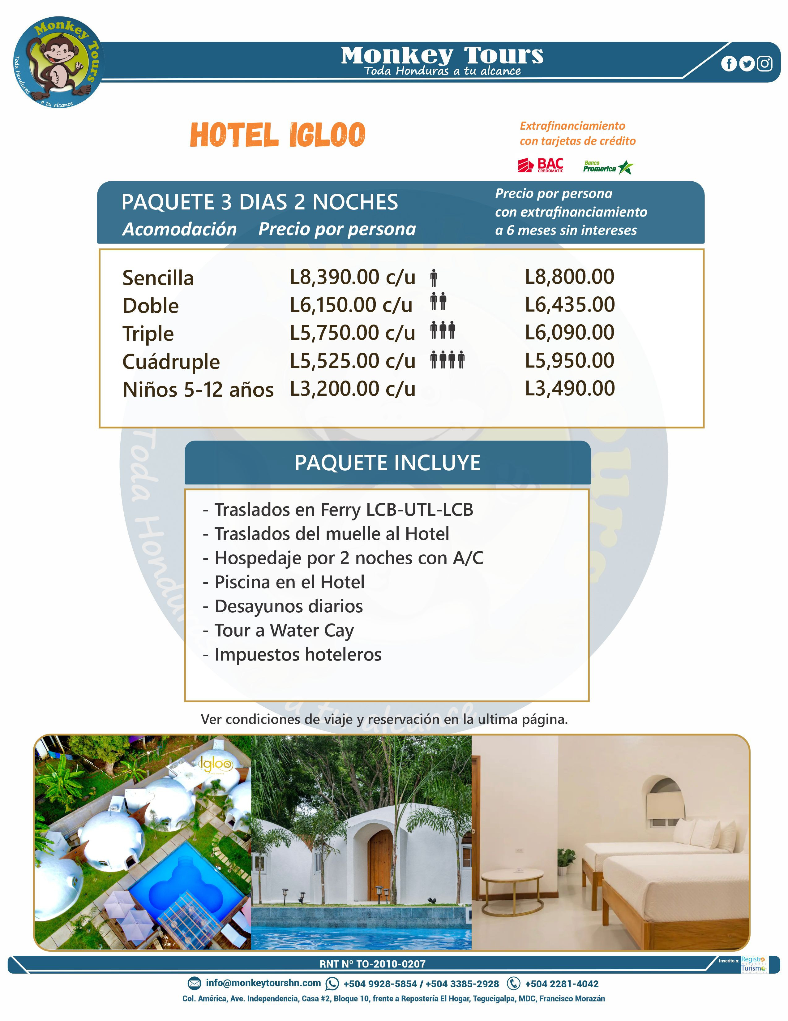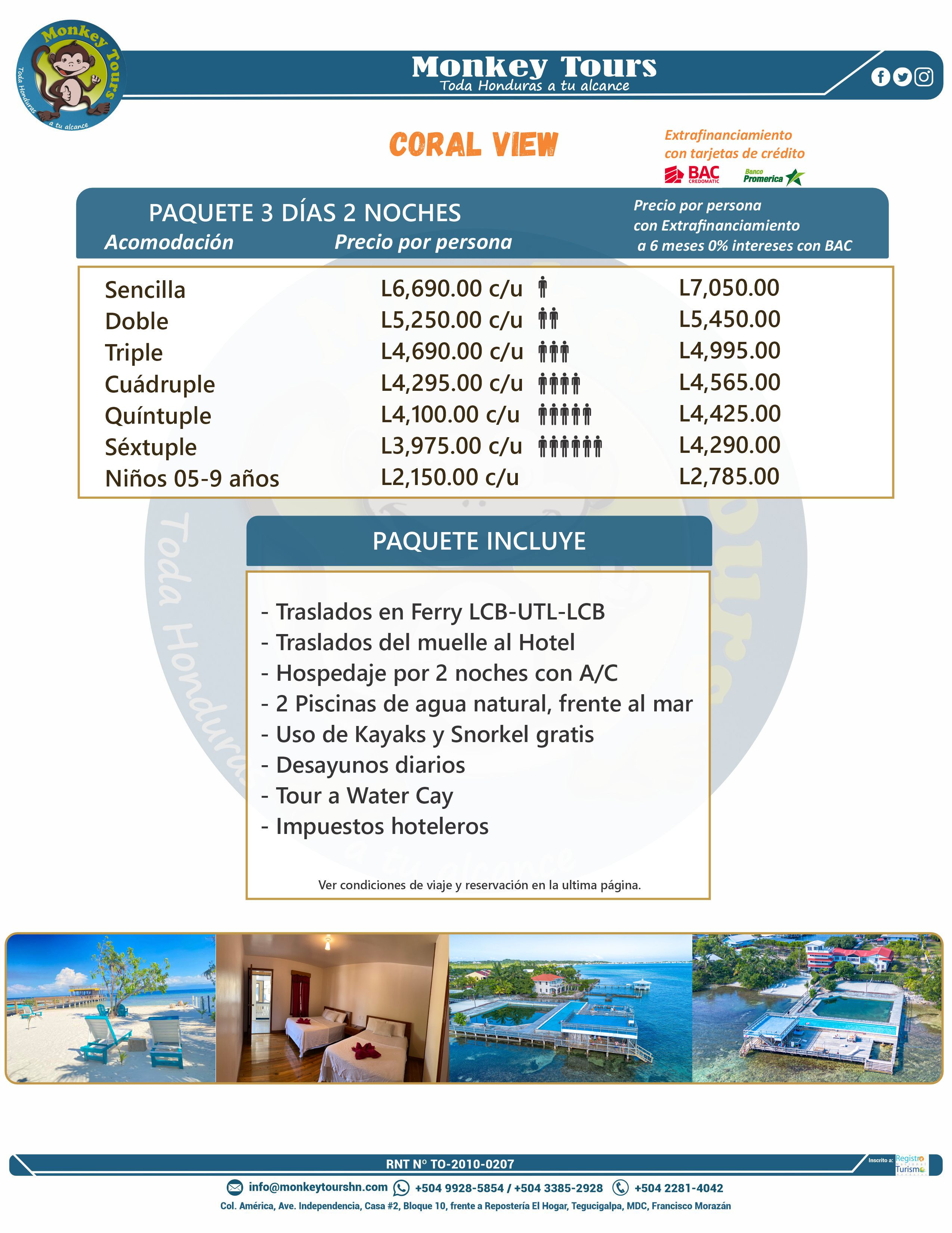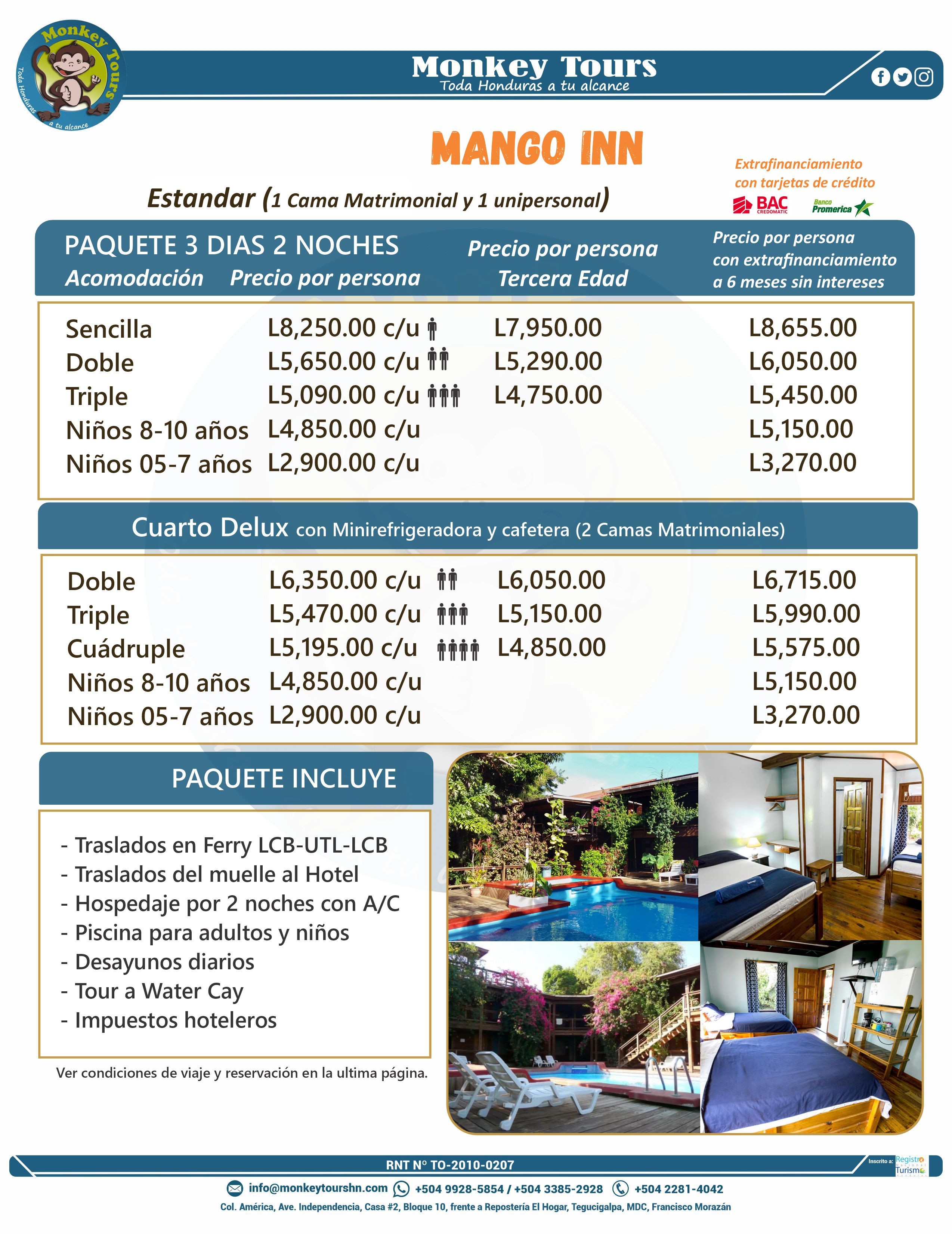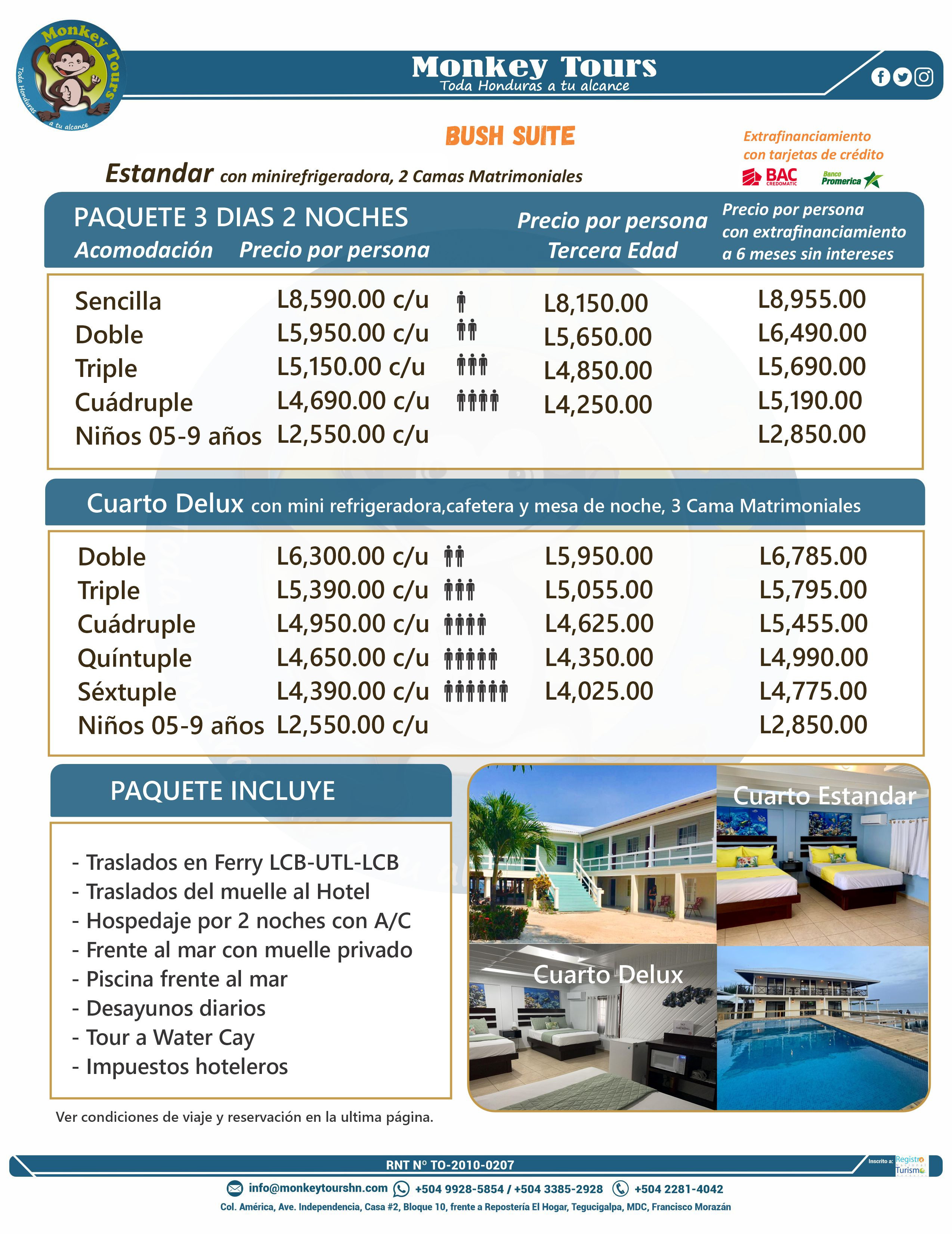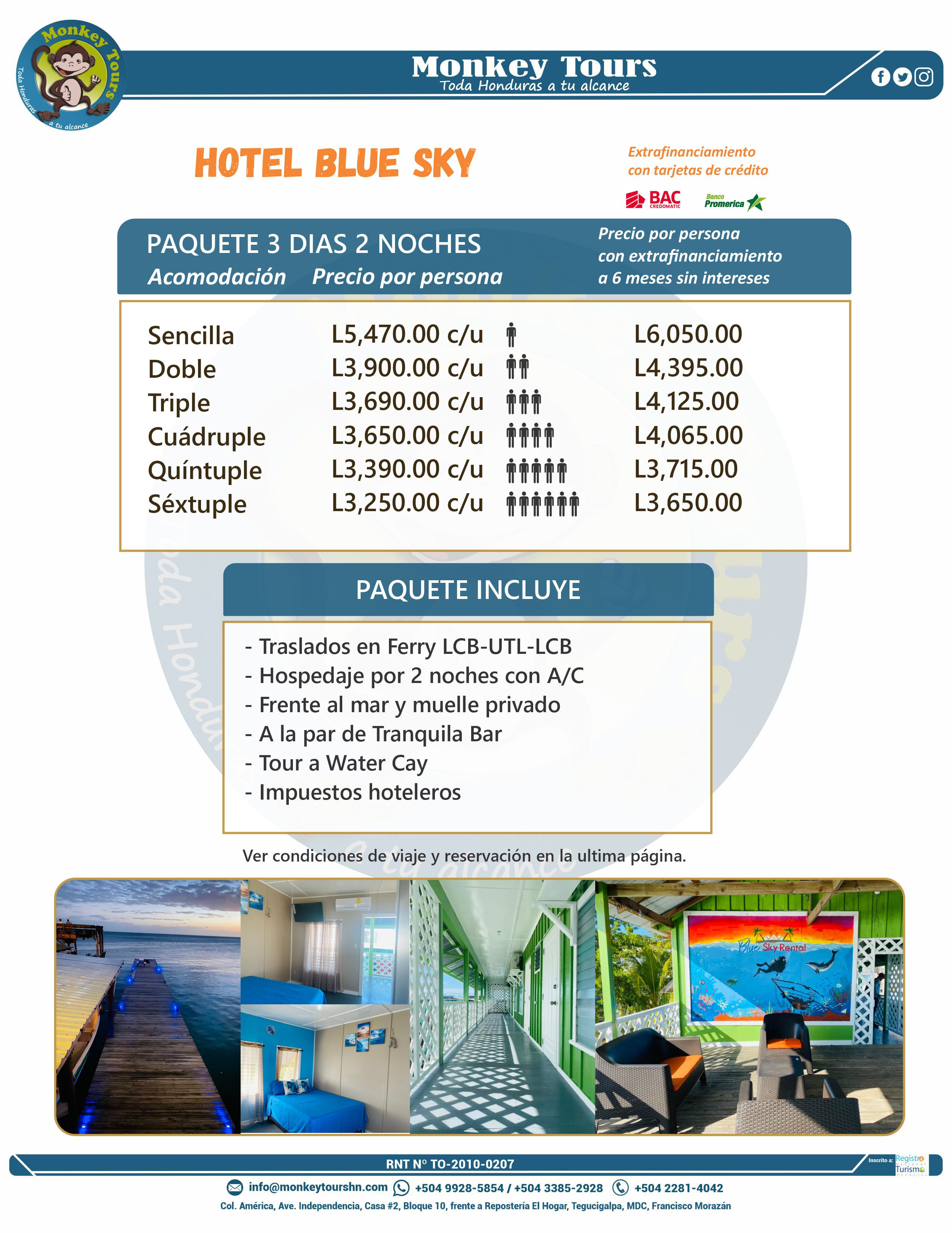 Impuestos portuarios no incluidos, pago personal en el muelle de Cabotaje de La Ceiba (Valor aproximado de L35.00 por persona)